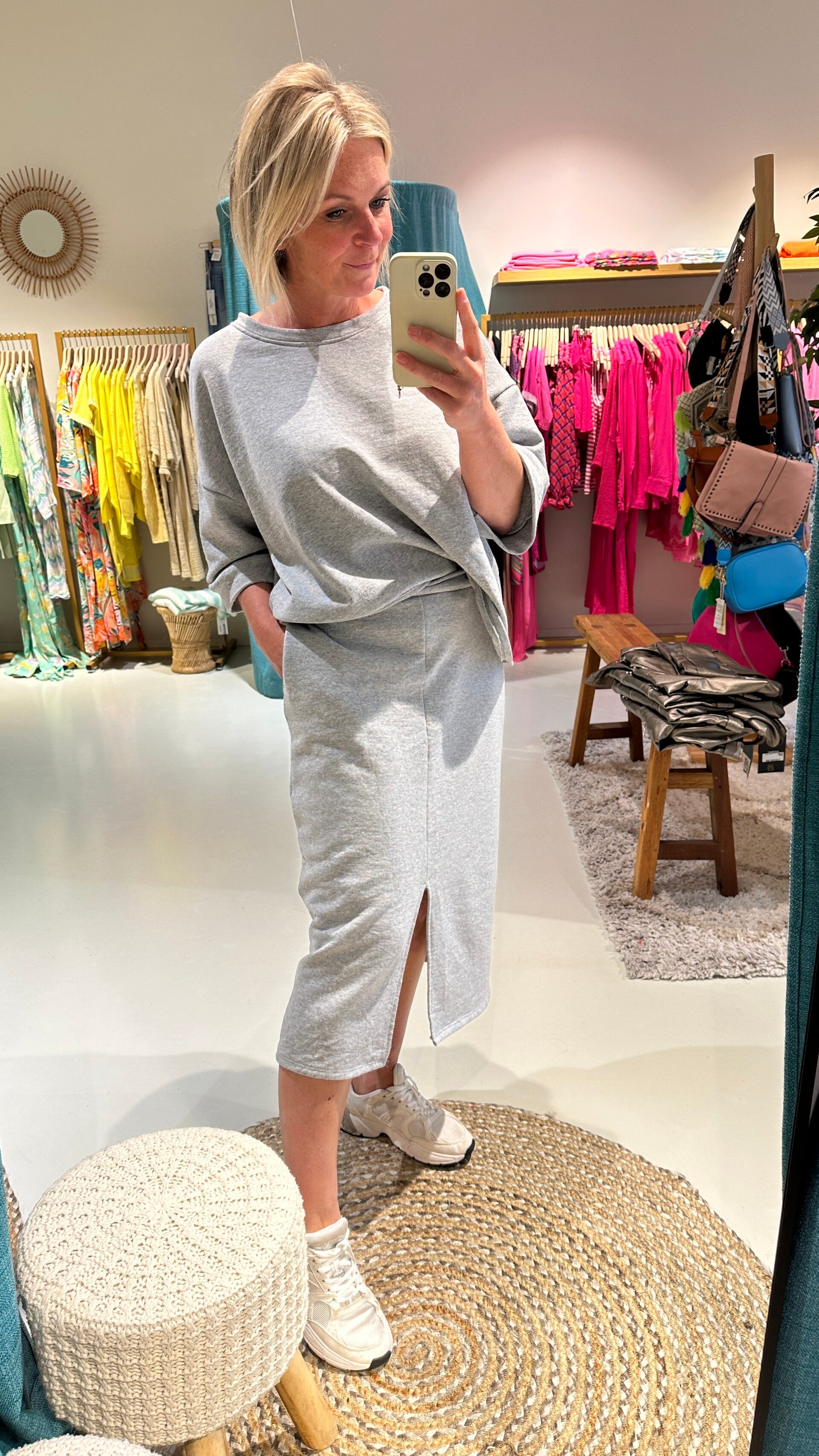 Zalige rok!Deze heeft een split vooraan en heeft zakken.De rok heeft een elastiek achteraan en draagt heel zacht door de sweaterkwaliteit.